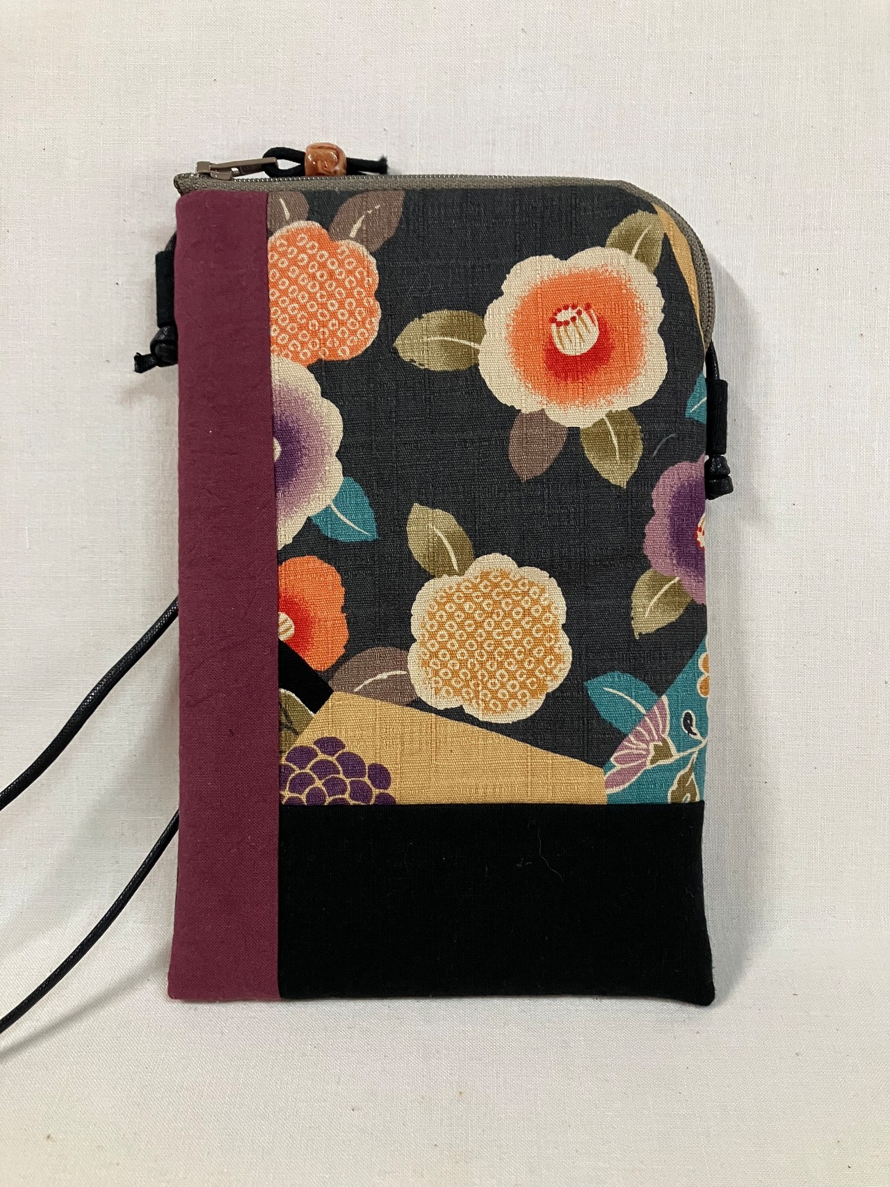 和柄の布などをつなぎ合わせて、スマホショルダーを作りました。
