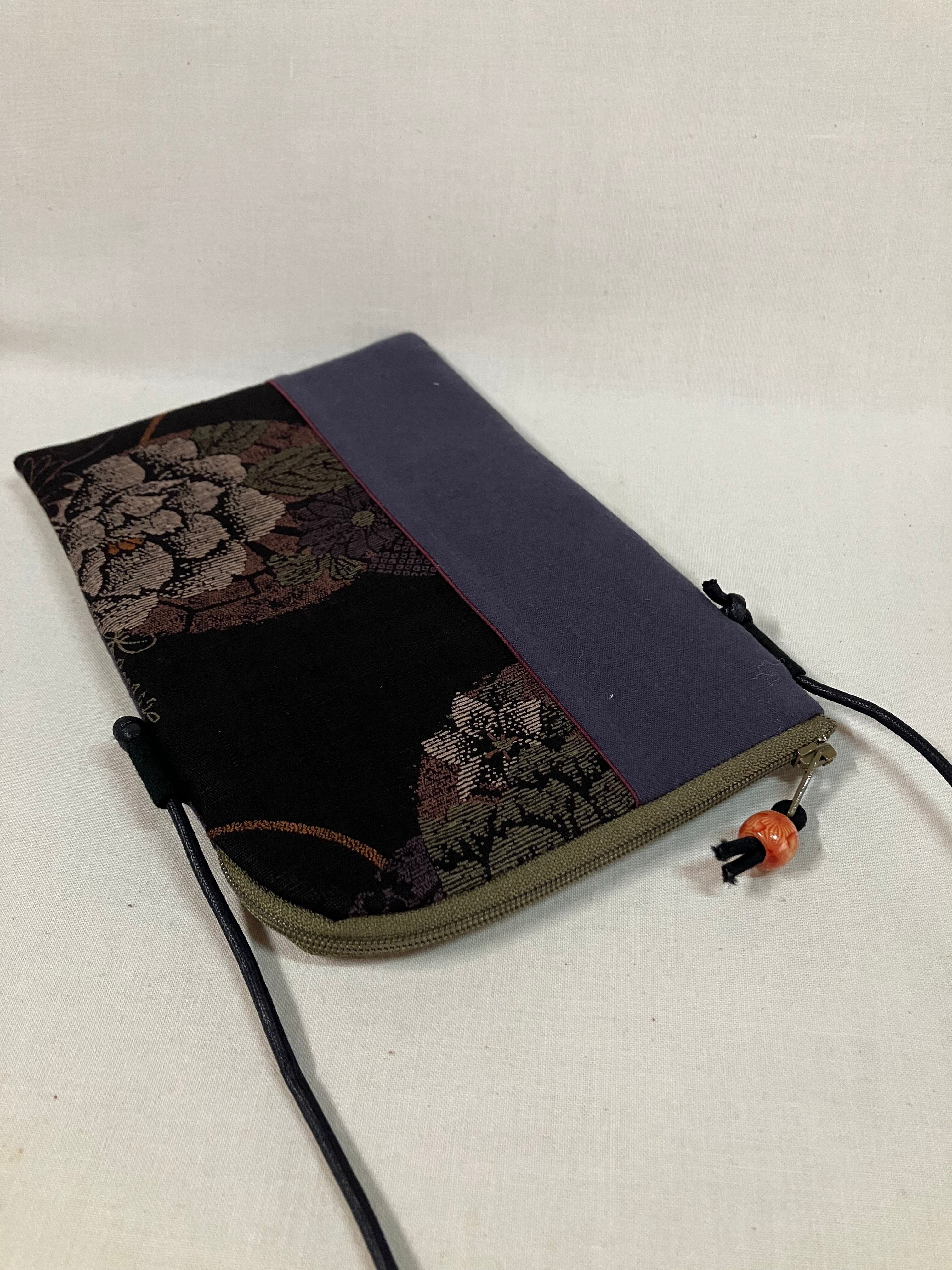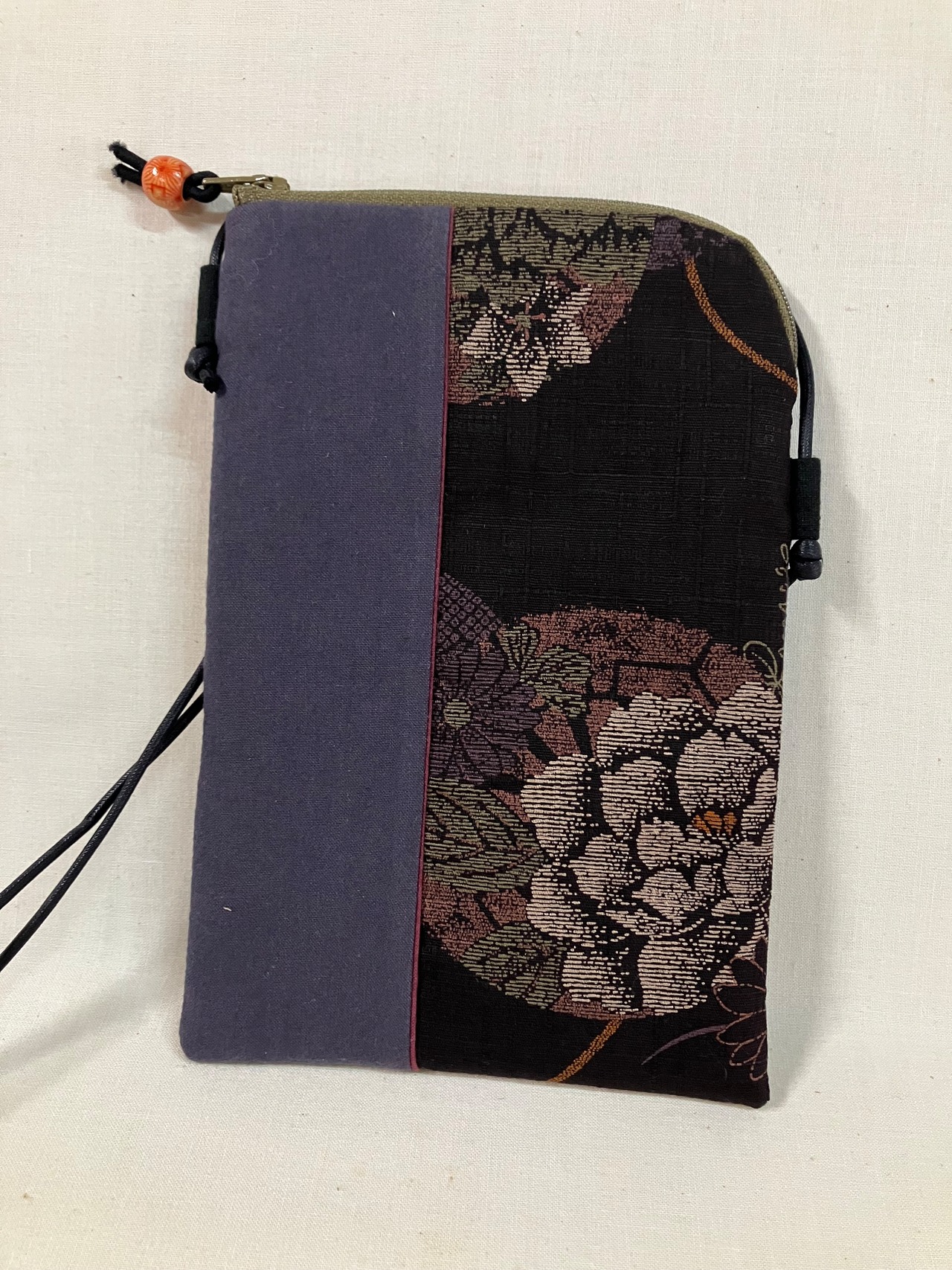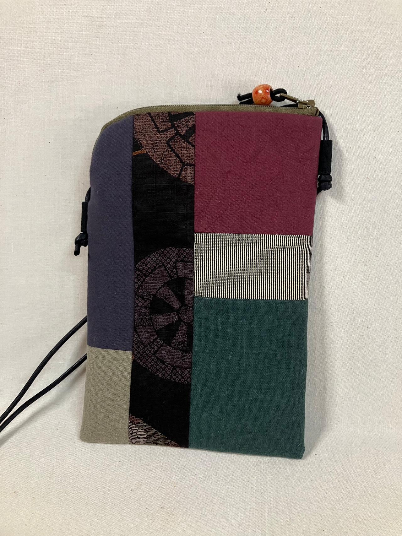 和柄の布などをつなぎ合わせて、スマホショルダーを作りました。