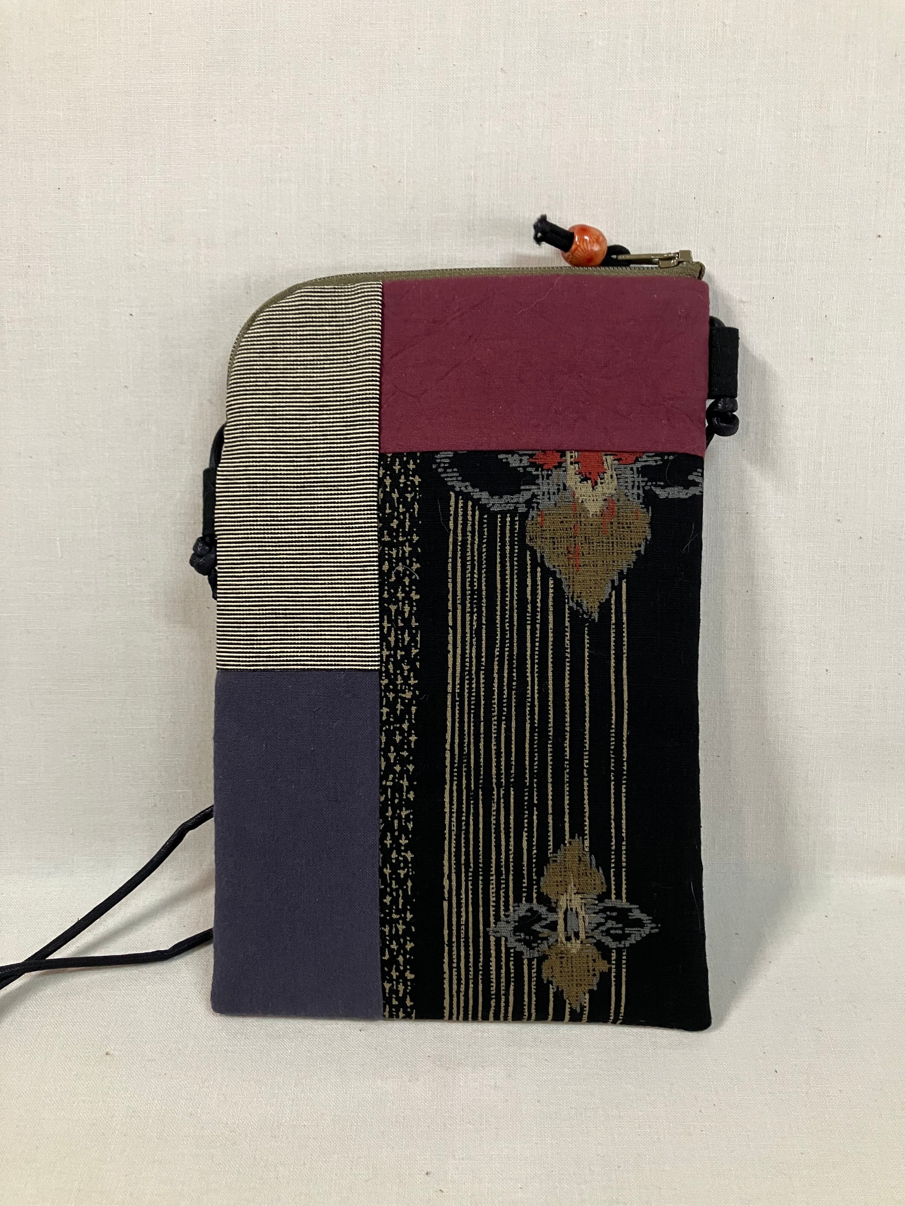 和柄の布などをつなぎ合わせて、スマホショルダーを作りました。