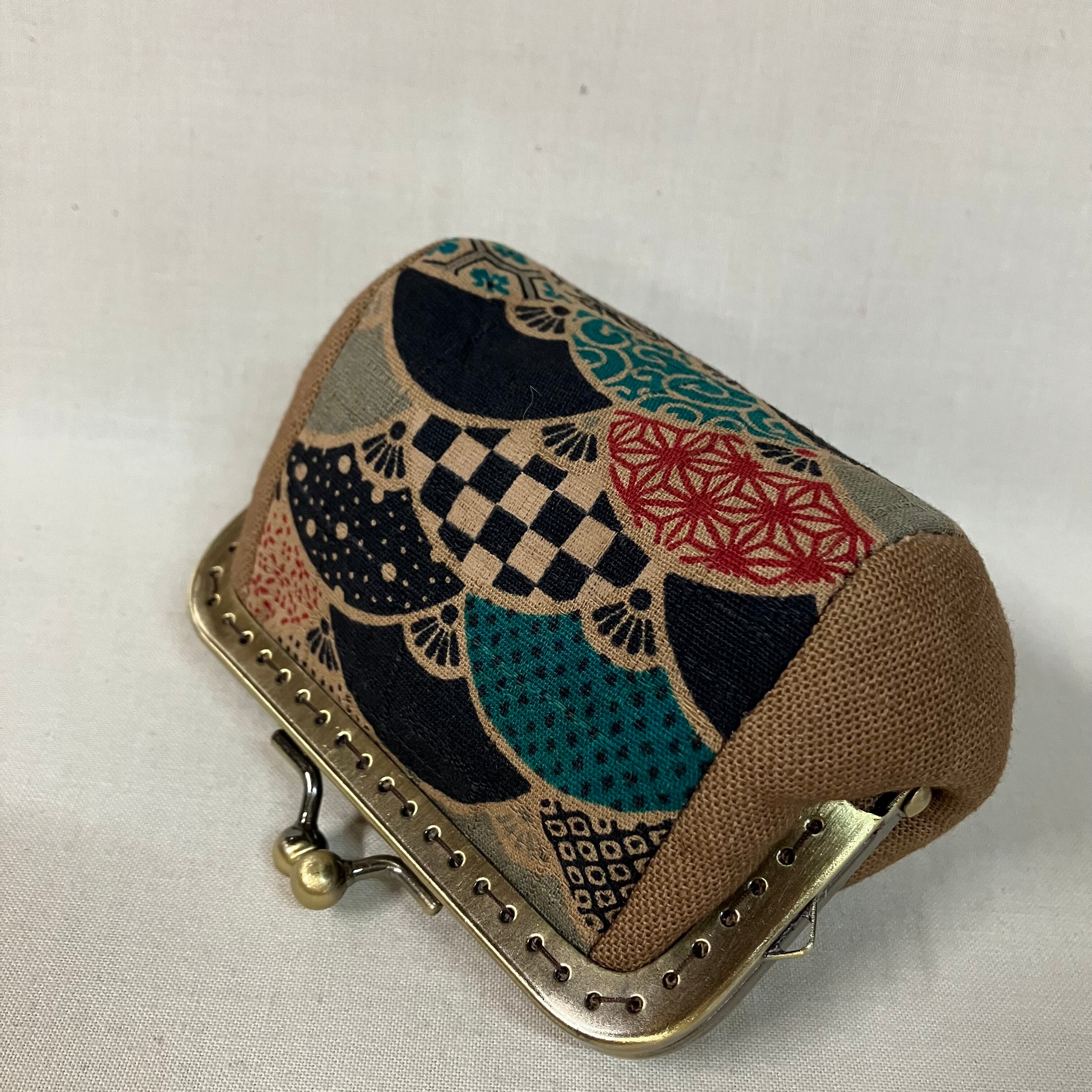 柿渋染め ぷっくりがま口(角)26B13 青海波