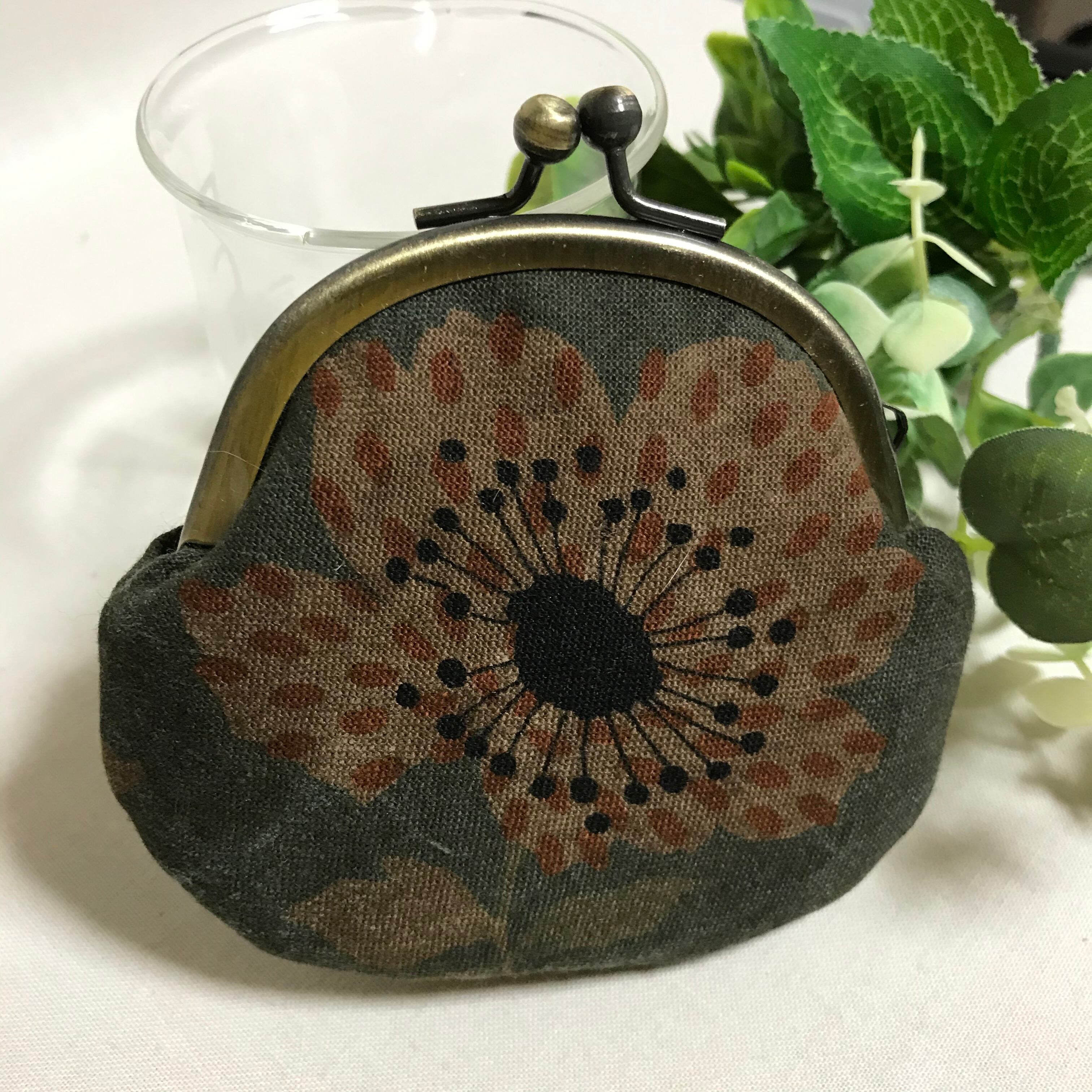 手染め柿渋布のミニがま口です。